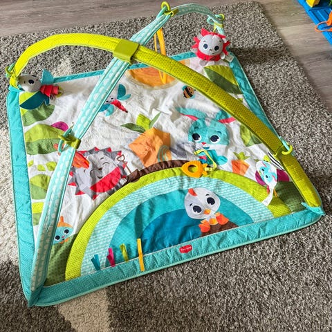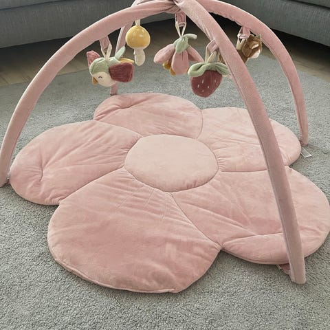 Sophie la girafe leikkimatto. Kuin uusi! Kaaret helppo kiinnittää ja irrottaa neppareilla. Kankaassa eri tekstuureja. Matto on käännettävä. Toisella puolella alusta, jossa voi ottaa vauvasta viikoittain/kuukausittain kuvat. Mukana alkuperäiset erittäin siistissä kunnossa olevat lelut sekä peili. Leluissa rapinaa, vinku-ääntä sekä helinää. Alusta juuri pesty hajusteettomasti.