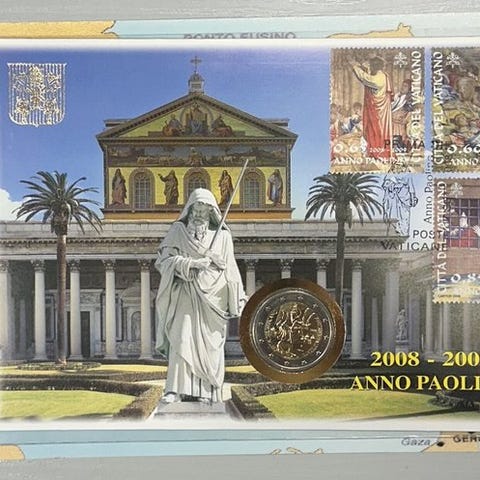 Vatikaani, 2 € muistomerkkiä vuodelta 2014 'Mur de Berlin' ja vuodelta 2015 '8e rencontre mondiale des Familles', lyönti BU, alkuperäispakkauksessaan, uudet!