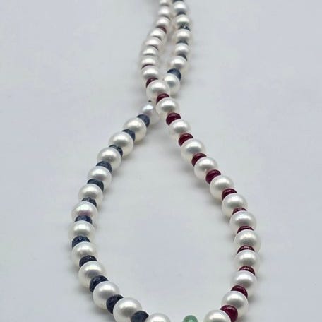18K / 750 keltakulta -kaulakoru Akoya-helmillä, makeanveden helmillä ja safiireillaKullan leima: 750Pituus: 45,5 mmPaino: 12,39 g• 1 Akoya-helmi, Ø 9,4 mmHelmiintyype: suolaisen veden Akoya-helmi (Pinctada martensi osteri)Muoto: pyöreäKotoisin: JapaniVäri: valkoinenKiilto: erittäin korkea kiiltoNacre: paksuPinta: sileä ja puhdas (katso kuvat)• 106 makeanveden helmeä, Ø 4 mm• 10 rondellileikattua sinistä safiiria, 3 × 4,5 mmNämä kivien tyypit ovat yleisesti käsitelty värin parantamiseksi. Tätä ei ole testattu näille erityisille kiville.ToimitusVakuutettu toimitus UPS:n, DHL:n, FedEx:n tai Correos Expressin kautta.Arvioitu toimitusaika:• Espanja: 24 h• Eurooppa: noin 48–72 h• Maailmanlaajuisesti / EU:n ulkopuolella: 72 h (toimitusajat voivat vaihdella kohdemaan mukaan)