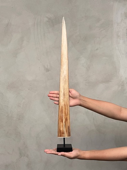 Iso käsin kaiverrettu härän kallo, jonka ovat kaivertaneet käsityöläiset, jotka ovat siirtäneet muinaisen kaiverrustaiteen isästä seuraavalle sukupolvelle. Kallo on kokonaan käsin veistetty huolellisesti. Se on epätavallinen, koriste-esine. Kaiverrettuna on kaunis Star Mandala Motif.NOIN MITATKorkeus: 53 cmLeveys: 52 cmHUOM:- Olemme lisänneet muutaman kuvan käsityöläisistämme työn ääressä antaakseen käsityksen siitä, miltä veistetyn kallon valmistusprosessi näyttää.- PAINON mainittu on sisältänyt pakkausmateriaalin.VASTUUVAPAUSLAUSEKKEET- Sarvet irrotetaan kuljetusta varten, ja ne on helppo kiinnittää takaisin. Sarvet ovat aina pakkauksen pohjalla kallon alla. Varmista, että poistat sarvet ennen pakkauksen hävittämistä.- Koska kyseessä on luonnollinen kallo, siinä voi olla pieniä luonnollisia halkeamia, rakoja tai kadonneita hampaita. Tämä on normaalia. Katso kuvat.- Kallomme puhdistetaan ammattimaisesti, mutta hampaisiin saattaa joskus tulla pientä värjäytymistä. Tämä on luonnollista ja normaalia, eikä siihen voi tehdä paljon. Katso kuvat.TOIMITUS- Esine lähetetään seurantakoodilla DHL Parcelin, DPD:n tai postNl:n kautta. Seuranta päivittyy Catawiki-lotillasi, kun paketti on jätetty.- Tarkista säännöllisesti, ettei pakettia palauteta meille, jolloin ostaja vastaa toisen lähetyksen toimituskustannuksista.- Seuraukset Espanjaan ja Portugaliin käytä tätä linkkiä ja lisää Catawiki-lotistasi saamasi seurantanumerohttps://clientesparcel.dhl.es/LiveTracking/HomeEMME YHDISTÄ TOIMITUSTA!!!Jos sinulla on kysyttävää pakettisi suhteen, ota yhteyttä Catawiki-viestipalvelun kautta. Yritämme vastata 3 työpäivän kuluessa.