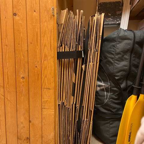 Laatikot on teipattu 8 kpl nippuihin, jotta kuljettaminen on helppoa – vaikka ilman autoa.