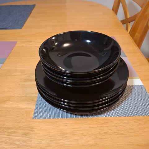 Uusia, käyttämättömiä matalia lautasia, joiden halkaisija 21cm, väri musta. Tarrat jokaisessa kiinni. Ostettavissa 1 - 18kpl.