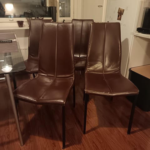 Annetaan 6 kpl tuoleja. Löytyy elämisen jälkiä kaikista tuoleista.