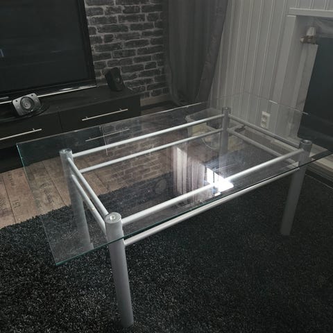 Jyskistä ostettu lasinen sohvapöytä