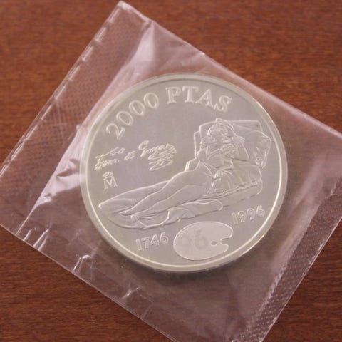 2000 Pesetan kolikko, 925 todistettua hopeaa, kokonaispaino 18,00 gtoimitus Packlincin kauttatoimitukset vain EU:n alueelle
