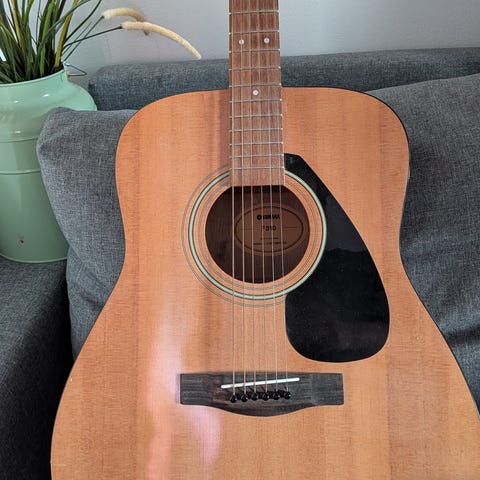 Hyvä perus akustinen kitara kantokassilla, 2kpl hihnoja, parit uudet kielet, viritin ja nuottiopas. Täydellinen aloitus setti.