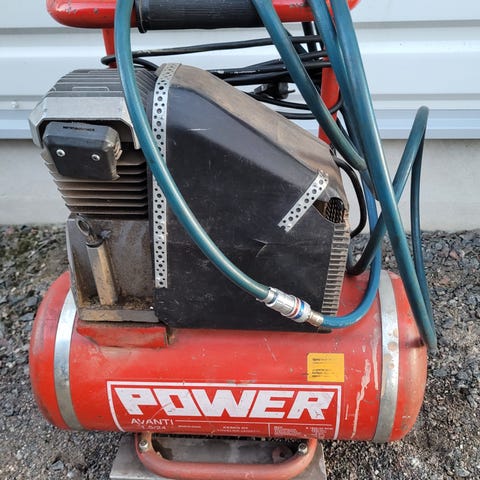 Meca ilmakompressori. Säiliömallinen kompressori, jossa hihnavetoinen kompressoriyksikkö ja sähkömoottori. Soveltuu paineilmatyökalujen käyttöön, renkaiden täyttöön ja muuhun paineilmatyöhön esimerkiksi autotallissa tai verstaalla. Tarkemmat tekniset tiedot, kuten säiliön tilavuus ja teho, eivät ole näkyvissä kuvasta.