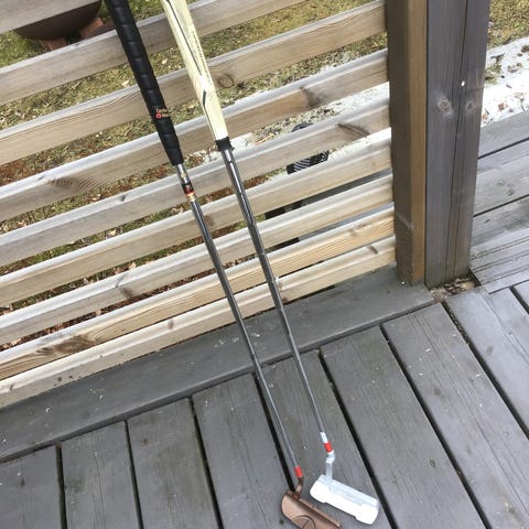 Golfputterisetti, jossa useita eri merkkejä ja malleja. Kokoelmassa näkyy muun muassa Wilson Staff -puttereita sekä TaylorMade Rosa -putteri (Monza). Puttereissa on erilaisia lapa- ja mallettityyppisiä päitä, metallivarsia ja perinteisiä grippikahvoja. Sopii golfin pelaajalle, joka tarvitsee putterin harjoitteluun tai varamailoiksi. Myydään erikseen tai pienenmpinä setteinä.