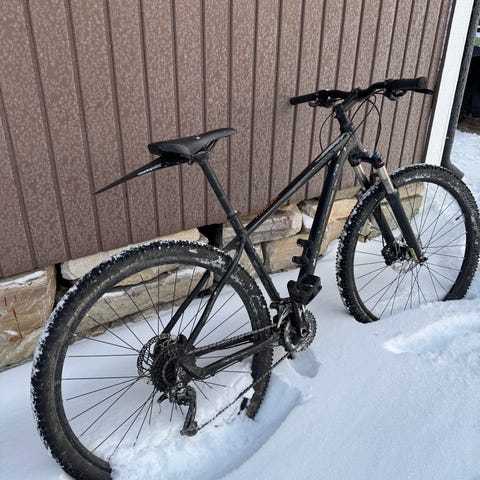 Uusittu voimansiirto, uudet polkimet, satula, kahvat, uudet tiellä rullaavammat gravel-kumit +sisurit maastorenkaiden tilalle. Poluille kannattaa vaihtaa isompaa nappulaa. Jarruhuoltoon vein liikkeeseen ja nämäkin lopulta kokonaan uusittiin, kun priimaa ei saatu alkuperäisistä.