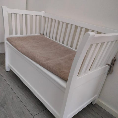 Käsityönä tehty pirtinpöytä ja penkit. Kokonaisuuteen kuuluu suorakaiteen muotoinen puinen pöytä ja kaksi pitkää penkkiä. Materiaalina on käsittelemättömän tai kevyesti käsitellyn näköinen liimapuulevy, jossa näkyy puunsyyt ja oksakohdat. Pöytä ja penkit soveltuvat lasten askartelu- ja leikkipöydäksi tai ruokailuun. Pöydän kannessa on näkyvissä käytön jälkiä ja väriläikkiä, jotka voi halutessa hioa tai käsitellä uudelleen. Penkkien pinta on sävyltään samaa puuta kuin pöytä.