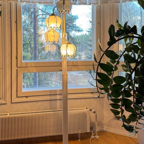 Myyn äitini 80-luvulla ostaman marmorijalalla olevan kissankello-jalkavalaisimen. Valaisin on hyvässä kunnossa oleva ja kaikki lasikuvut ovat ehjiä.