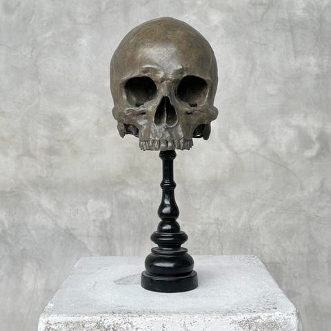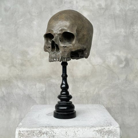 Patsas, Stunning human skull no jaw statue on a custom stand - Brown Color -