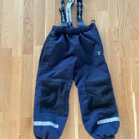 Kuvanmukaiset, tummansiniset Polarn O Pyretin Weatherpro housut, melko hyväkuntoiset. Jalkalenkeissä rispaantumista. Nimikoidut.