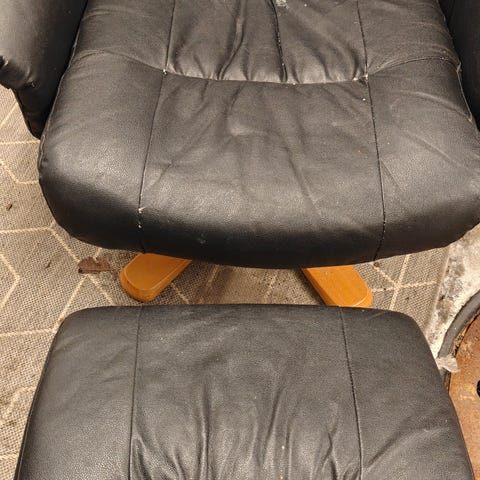 Ruskea nahkatuoli, jossa erillinen istuintyyny. Lisätietoja ja -kuvia saa pyydettäessä. :) Nouto Katajanokalta.