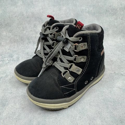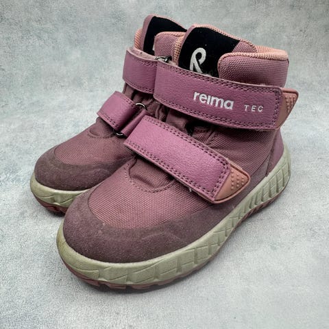 Hyvökuntoiset Reiman välikausikengät. Tarrojen pito hieman heikentynyt, mutta pysyvät testatessa hyvin kiinni. Pohjissa kantapään kohdalla kulumaa, ei vaikuta käyttöön. Yleisilmeeltään oikein siistit kengät. Testattu vedenpitäviksi juoksevan veden alla.