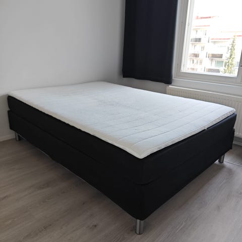 Myydään Ikean sänky.140*200.Väri tumman harmaa.Jos haluaa patjat hinta on 150e