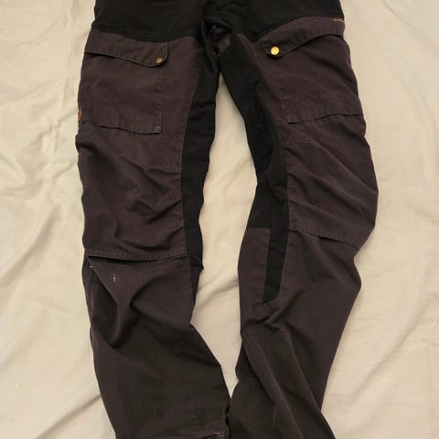 Myydään miesten housut, Fjällräven Kaipak, musta väri, koko EU 48, long. Housut ovat hyvässä kunnossa, tarkempi kunto näkyy kuvista. Vyötärön takaosa ja polvien kohdat on tehty joustavammasta materiaalista.