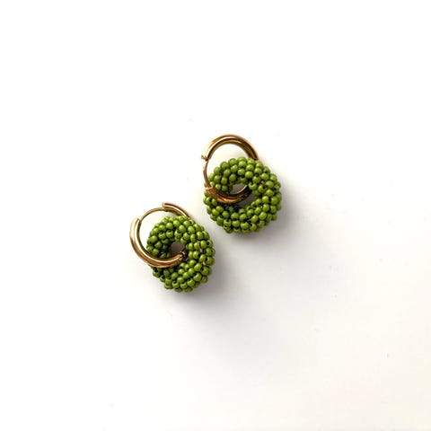 Matta-mustat pienistä lasihelmistä tehdyt korvakorut, kullansävyiset renkaat