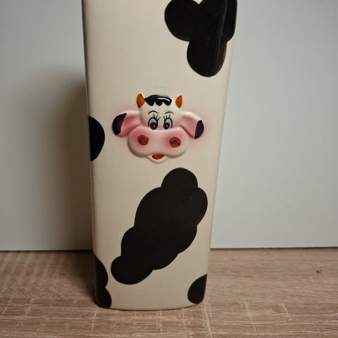 koriste-esine, lehmähahmoinen figuuri. Materiaalina keramiikka, väritys mustavalkoinen punaisilla yksityiskohdilla. Sopii sisustuselementiksi tai keräilyesineeksi. Käytettävissä koristeena eri vuodenaikoina.