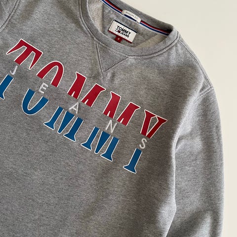 Tommy Hilfiger miesten collegepaita, koko S. Harmaa puuvillainen paita, jossa pyöreä pääntie ja resorit helmassa sekä hihansuissa. Hihassa tummansininen nauha, jossa toistuva Tommy Hilfiger -teksti. Rinnassa pieni Tommy Hilfiger -lippulogo. Soveltuu arkipukeutumiseen ja kerrospukeutumiseen.