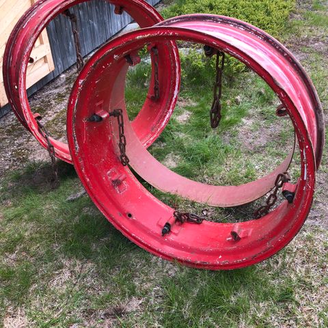 Eteen Raju vanteilla Goodyear 13.6R24, taakse Valmetin? vanteilla Belshina 15.5R38. Välivanteiksi valittavissa 38" tai nuo kuvassa näkyvät 34"-38". Säilytetty aina kylmässä hallissa. Etusissa hieman pykimää, takasissa ei lainkaan. Toki jotain raapaleita ja kolhuja löytyy. Ollut meillä 14.9R24 / 18.4R34 rengastuksen levikkeinä, soveltuu siihen kokoon loistavasti. Kiinnitysketjut kuuluu kauppaan. Myydään koko paketti kerralla.