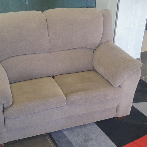 3-istuttava sohva, joka jakautuu kätevästi kahteen osaan kuljetusta ja sijoittelua varten. Vasemman puolen istuimessa on vaurioituneet jouset, mutta sohva on edelleen käyttökelpoinen sellaisenaan.