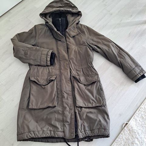 Khakin värinen, kivan mallinen, sisukset hieman liikkuneet pesun aikana