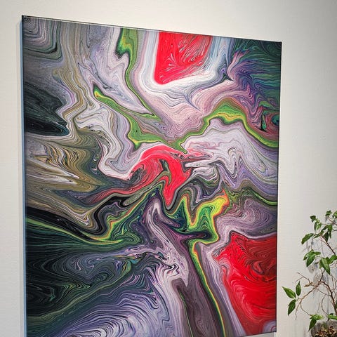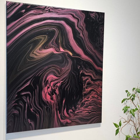 Teos on tehty akryylimaaleilla fluid art / pouring -tekniikalla.