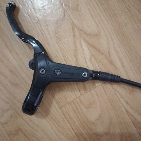 Shimano hydraulinen takajarru kahvalla jarrusylinterillä ja pitkällä letkulla. Kaksimäntäinen jarru. Myös kiinnike osa ja pultit tulee mukaan.