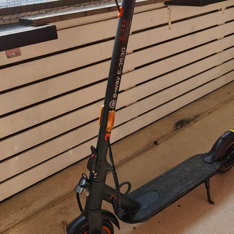 E-Way E-3530 kunnossa oleva sähköpotkulauta käytetty kaksi kesää ja säilytettyä lämpimässä paikassa. Niin kuin kuvasta näkyy niin renkaat ovat kuluneet.. en tiedä kuinka pitkään matkaa akku kestää enää mutta veikkaan että 12-17 km. Mukaan tulee potkulauta Lukko ja sille pussi ja laturi. Valot ja jarrut toimii ihan moitteettomasti. Ei olla talvella ajettu