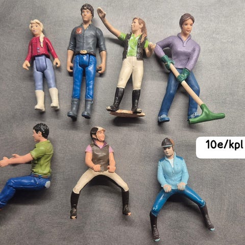 Myydään iso ja hyväkuntoinen Schleich setti. Useampi hahmo, 9 isoa hevosta, 6 varsaa, ruokia, harjoja, satuloita ja suitsia, loimia, auto ja hevostraileri + kuski, eläinlääkäri ja tarvikkeet, kottikärry, talikoita, riimuja, aitaus… kaikki mitä näkyy kuvissa.