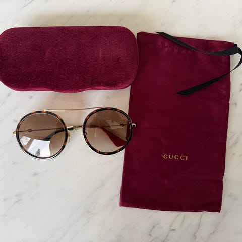 Myydään aidot uudenveroiset Gucci aurinkolasit ja mukana tulleet tarvikkeet. Tilattu alunperin Zalandolta ja tästä löytyy tilausvahvistus pyydettäessä. Laseissa ei mitään jälkiä. Nouto onnistuu Pasilasta tai Helsingistä.