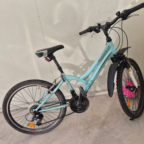 7 vaihdetta, edessä hyvä jousitus, takalokari, juomapulloteline, jalka- ja käsijarrut, kaksi avainta lukkoon. Kilometrejä nähneet renkaat.