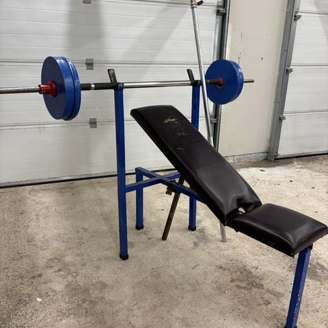Säädettävä penkkipunnerruspenkki ja painot yhteensä 50 kg.