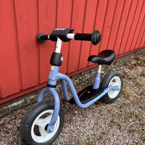 Vaaleansininen pienten lasten Puky -merkkinen potkupyörä. Nouto Kokkolasta.