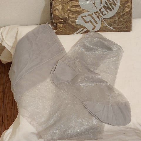 Myydään käyttämättömät sukkanauha sukat. Koko 10 1/2 - 11. Väri valkoinen. Amar. 15 den.