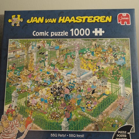 1000 palaa, kaikissa palat tallessa. Palapelit kasattu 1-2 kertaa.