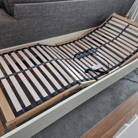 Runkosänky moottorisäle pohjalla. Mitat lev.160cm ja pit 200cm, patjat ja petarit mukaan, mitat 80cm ja 200cm x2 kpl, hyvä kuntoiset patjat, pää ja jalkopää nousee säätimellä, kuljetus kotiin Hämeenlinnasta 30km säteellä. Mukaan vielä uusi patja 80x200cm, käyttämätön ja uusi petauspatja 160-200cm