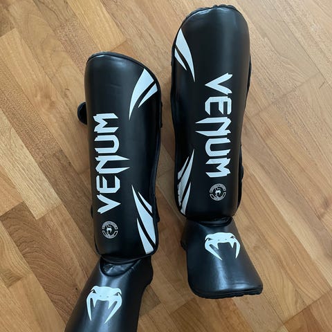 Hyväkuntoiset Venum kamppailulajeihin tarkoitetut säärisuojat kokoa XL. Molemmissa yläosissa vähän kulunutta pintaa, mutta muuten ihan siistit ja laadukkaat suojat.