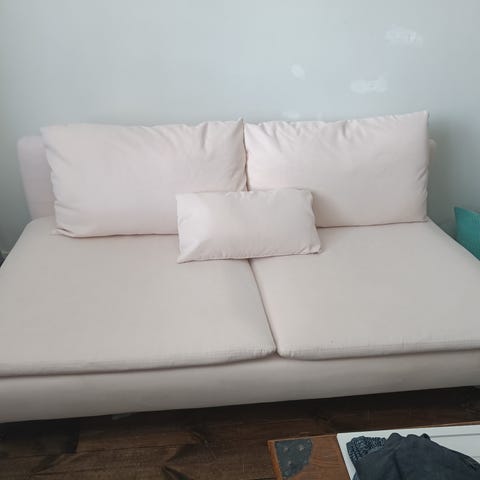 Vaaleanpunainen sohva