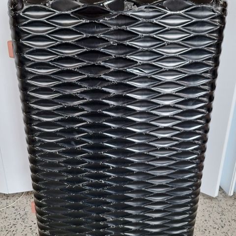 Kork.62 cm. Lev.40cm. Syv25 cm. Liikkuu kevyesti nostettavasta kahvasta.