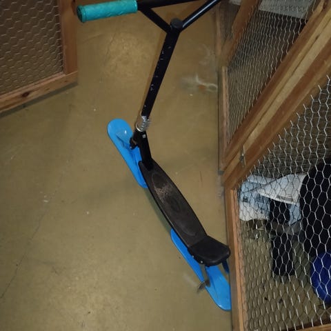 Annetaan jo parhaat päivänsä nähnyt sininen potku kelkka. Piristyisi uudesta maali pinnasta.