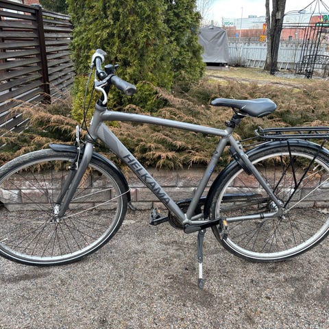 Tästä kesäkulkine. 28" korkea miesten malli. Renkaat ok ja ilmat pitävät. Ei lukkoa eikä tallaa. Vaihteet ja jarrut kunnossa.