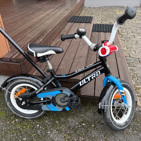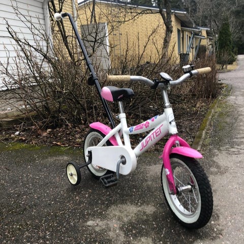 Mukaan apupyörät ja talutustanko.