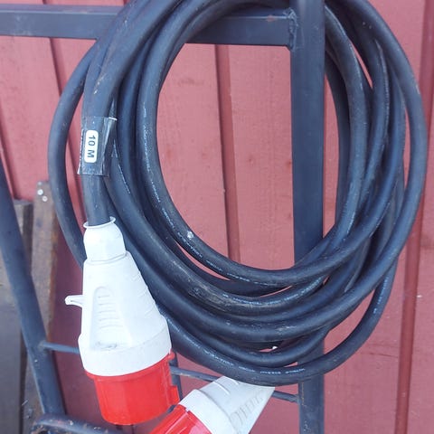 Voimavirtakaapeli, jossa punaiset moninapaiset liittimet molemmissa päissä. Sopii esimerkiksi kiinteisiin sähkökytkentöihin, rakennustyömaalle, sähköauton lataukseen, joissa tarvitaan voimavirtaa. Voimavirtakaapeli 25m, 3 vaihde, 5g, 2.5mm, punaisilla liittimillä 400v.