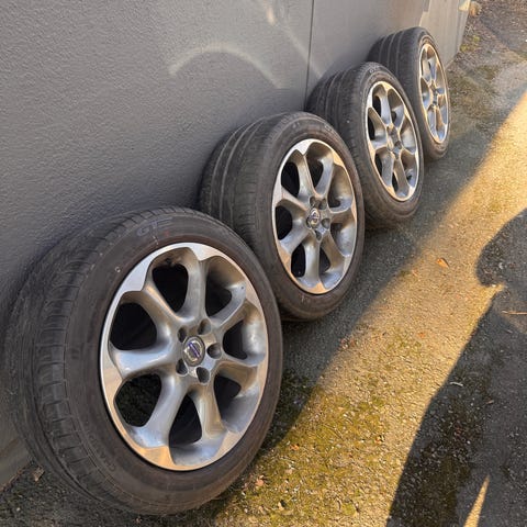 Vanteet ovat puolestaan Barzetta-merkkiset 17-tuuman alumiinivanteet (pulttijako 5*108, keskireikä 65.1 mm, soviterenkailla 63,4). Vanteet ovat suorat peruspestyt, OK-kuntoiset, mutta eivät mitenkään erityisen puunatut. Yleinen vannekoko sopii Volvo V70 mk2:n lisäksi moniin Citroen, Peugeot ja Ford-malleihin (ks. AI-yhteenveto).