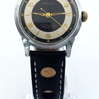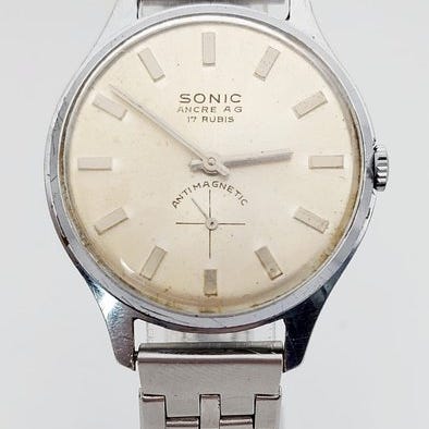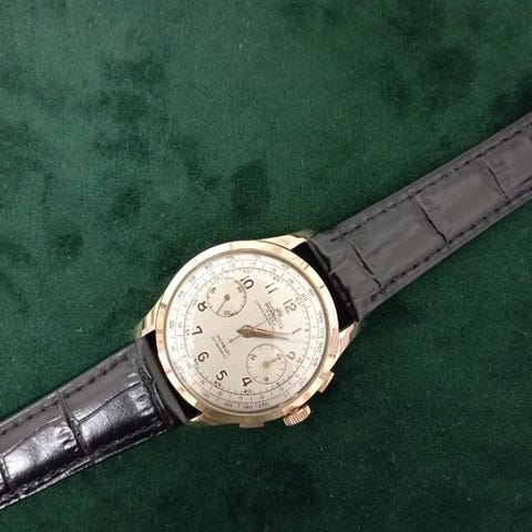 Pirofa Dress watch - 15 rubiiinia - ulkonäöltään erinomaisessa kunnossa ja toimivuudeltaan erinomaisessa kunnossa. Upea, elegantti ja erittäin keräilijöiden arvostama; todellisesti vaikea löytää.Upea ja erittäin hienostunut champagne-värinen kellotaulu, täysin kunnossa, nuolisoisitteiset osoittimet. Upea.Kultauksella päällystetty kuori, hyvässä kunnossa, muutamia pieniä ikääntymisen merkkejä, kaunis muotoilu, todella erikoinen, ja ruuvikiinnitteinen takakansi ruostumattomasta teräksestä, erinomaisessa kunnossa.Mekaaninen liike, 15 rubiinia, erinomaisessa kunnossa, toimii säännöllisesti.Uusi vihreä nahkainen ranneke, solki ad ardiglione.Mielenkiintoiset mitat: 34 mm Ø ilman kruunua, 36 mm kruunun kanssa, 41 mm lug-to-lug.Kuvat puhuvat puolestaan, keräilykello.Seurattava toimitus