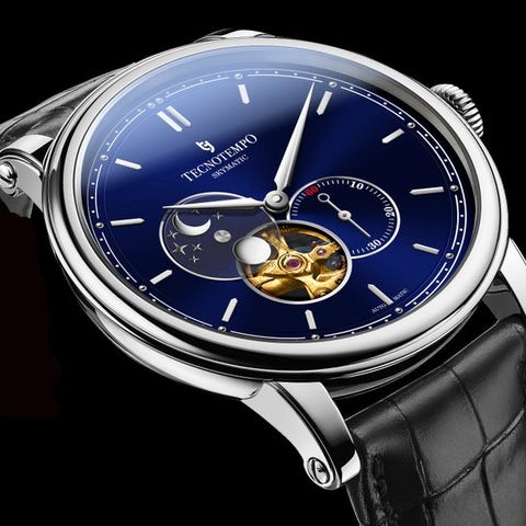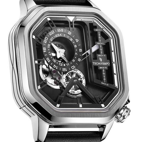 Tecnotempo on italialainen brändi ja rekisteröity tavaramerkki.Tecnotempo on italialainen brändi, joka yhdistää laadun ja designin jokaisessa kellossa niille, jotka arvostavat ajattoman tyylin.Jokainen malli, valmistettu korkealaatuisista osista, edustaa täydellistä kohtaamista perinteen ja innovaation välillä niille, jotka elävät aikaa tyylillä.Tässä huutokaupassa tarjoamme:"Dynamic Shuttle" automaattinen koneisto -Tämä Tecnotempo "Dynamic Shuttle" -kello ilmaisee vuorokauden 24 tuntia "Shuttle"-muotoisella tunti-viisahalla ja siinä on erityisesti muokattu japanilainen Miyota-liike.Kolmiulotteinen kellotaulu jakautuu useille tasoille ja minuutti-osoitin on sijoitettu kellotaulun erilaisten tasojen väliin.Kellotaulun oikealla puolella on pieni "Mach"-asteikko, jonka viimeinen arvo on "Mach 23", joka on yksi Shuttle’n avaruuslentoihin palatessaan mitatuista suurimmista nopeuksista.Uusi, erillinen rasia "Dynamic Shuttle" ja kahden vuoden virallinen takuuErityisesti muokattu japanilainen automaattiliikeKotelon halkaisija on 42 mm (kruunun ohittaen) x 47 mm ja paksuus 12 mmRuostumattomasta teräksestä valmistettu kotelo (yläreuna satiininen ja reunat kiillotetut)Upea musta monitasoinen kellotaulu, jossa näkyy liikeSafiirilasiMusta nahkarannekePainekruunuVesitiivis (EI sovellu uimiseen tai suihkussa käyntiin)Takakansi 4 ruuvein sekä kellon numerointi ja näkyvä liike.Rannekkeen kiinnitys: 22 mmKellon ympärysmitta on noin 21 cmPaino: noin 100 g.Tecnotempo-rasia (kuten kuvassa), 2 vuoden virallinen takuu ja yleisohje Teknotempo (kuten kuvassa) (englanti/italia) (olemme käytettävissä, jos tarvitset selityksiä kellon toiminnasta)Tavarat pakataan huolellisesti ja lähetetään Italiasta kuriiripalvelulla (seurattavissa ja vakuutettu)