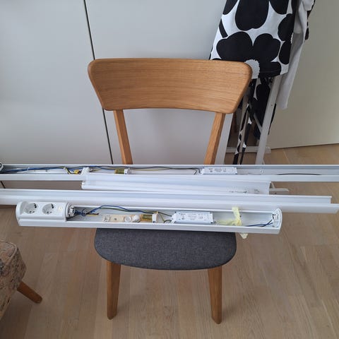 Yksi pistorasia irrallinen, mikä oli valaisimen toisessa päässä.