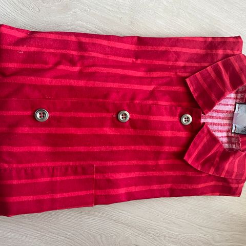Myydään juhlapaitana pidetty Marimekon lasten koon kelta-valkoraidallinen jokapoika paita. Ei käytönjälkiä, varanappi pesuohjelapussa.